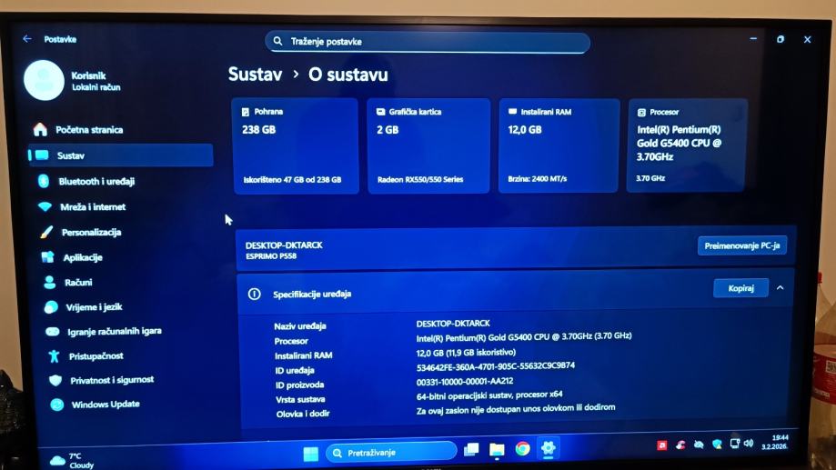Prodajem Fujitsu ESPRIMO P558/E85+ stolno računalo u tower kućištu. Računalo je opremljeno Intel procesorom s brzinom od 3.7 GHz, 12 GB radne memorije i SSD diskom od 256 GB.