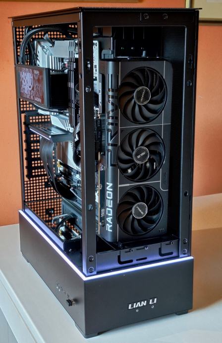 Lian Li SUP-01 je ATX kućište inovativnog „stand-up“ dizajna s odvojenim komorama za hlađenje komponenti. Dimenzije su 403 × 212 × 534 mm (≈45 L). Kućište dolazi s tri 120 mm PWM ventilatora, podržava do devet ventilatora i radijatore do 360 mm te ima 4 mm kaljeno staklo i PCIe 4.0 riser kabel za vertikalnu montažu grafičke kartice.