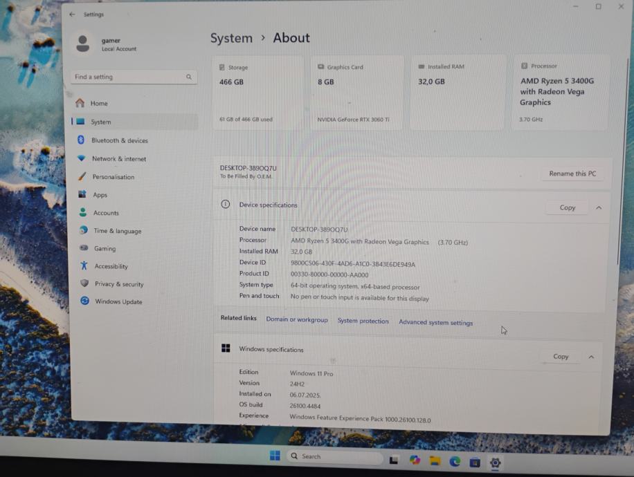 OS ..... WIN11 Pro aktiviran i ažuriran