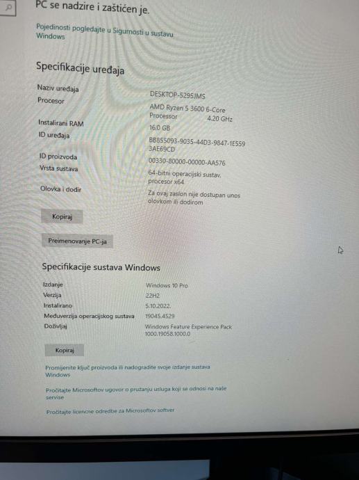 Prodajem Gaming PC – Ryzen 5 3600 / RTX 3050 / 16GB RAM