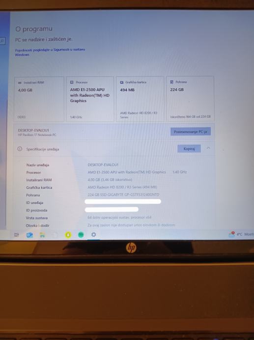 Procesor: AMD E1-2500 APU (1.40 GHz).