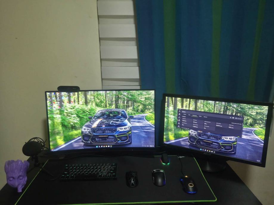 kompjuter, 1 tipkovnica , 3 misa, 2 monitora, slusalice, web kamera 1080p i mikrofon.