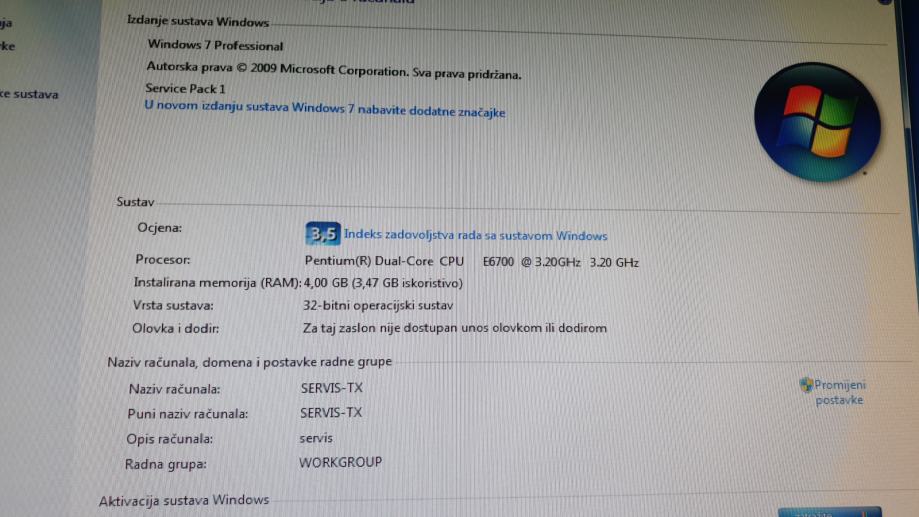 Računalo s 19" monitorom i originalnim Win 7