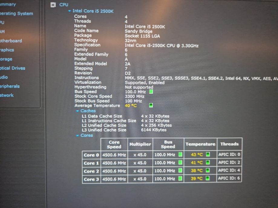 Intel i5 2500K, clockan na 4.5ghz zadnjih 10 godina, radi perfektno