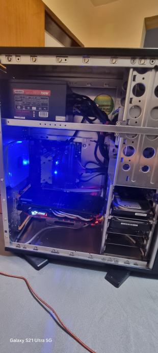 Racunalo u velikom kvalitetnom kucistu od brusenog aluminija Termaltake Shark prozracno i cisto.Jos su orginal ventilatori na njemu.Procesor xeon malo brzi od i7 4770 hladi se s Artic coolerom u igrama jedva dodje do 55 stupnjeva.Na grafickoj je promjenjena termalna pasta i termalni padovi.I dalje vrti igrice odlicno na full hd.Cak i novije s FSR.Racunalo radi super.Windows 10 na ssd disku .Na poklon monitor Samsung.