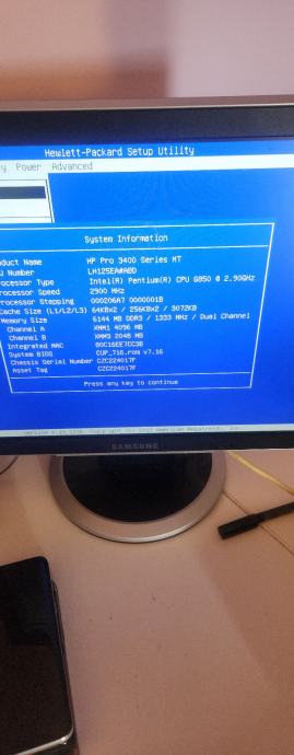 Prodajem računalo HP Pro 3400 Series MT. Specifikacije su prikazane na slici.