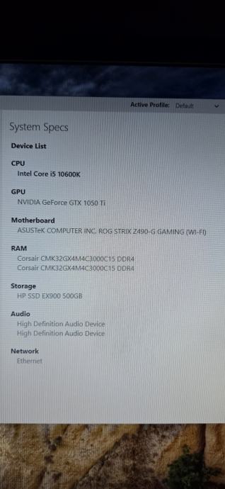 Procesor : Intel core i5 10600k + aftermarket hladnjak za procesor