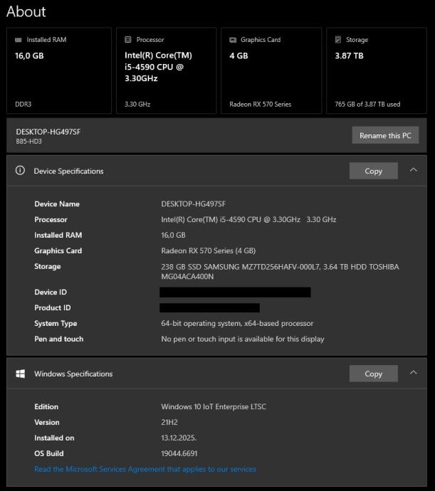 Win 10 IoT Enterprise LTSC (updates untill Jan 13, 2032), ukljucuje instaliran Office 365 i par igara.