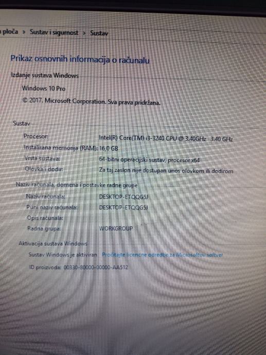 Na računalo je instaliran Windows 10 PRO, Office 2016 paket te dodatni osnovni programi.