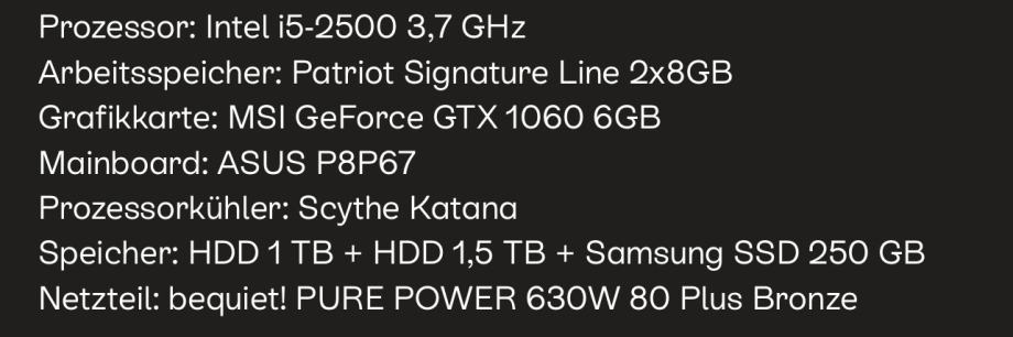 Procesor: Intel i5-2500 3,7 GHz