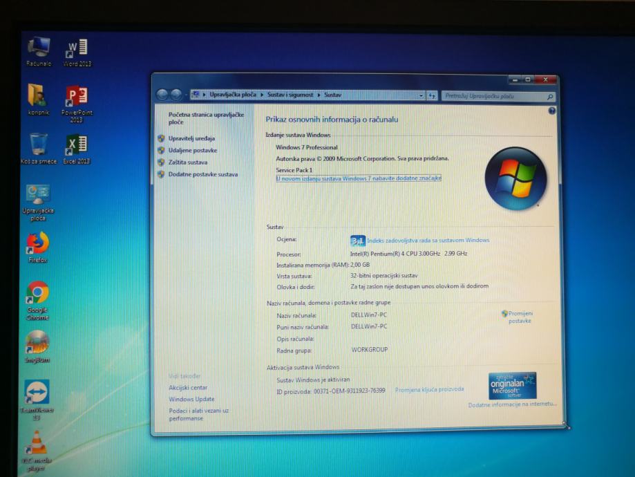 Na računalu je instaliran Windows 7 Professional 32 bitna verzija na hrvatskome.