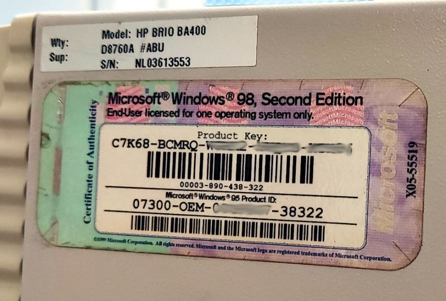 - instaliran Windows 98 SE (original naljepnica na kučištu)