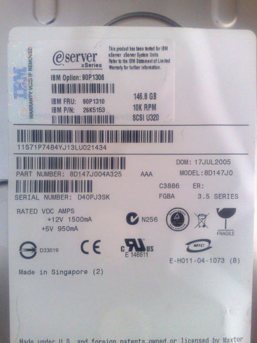 # HDD 2x 73GB 10k, (upareni - isti model & firmware)
