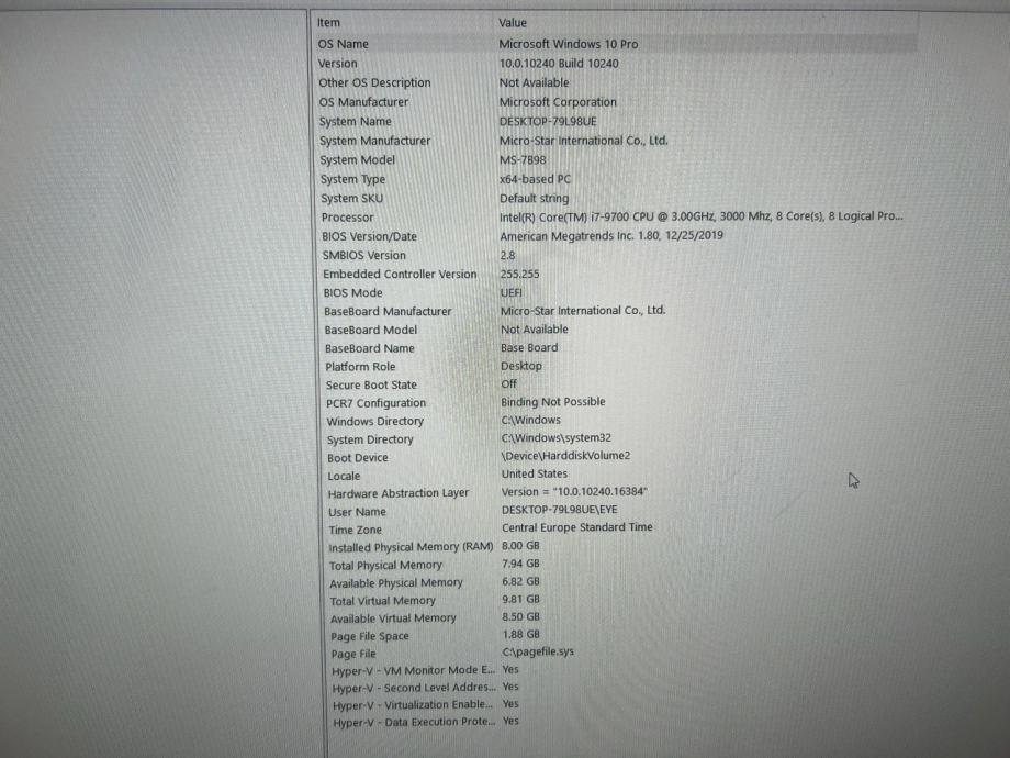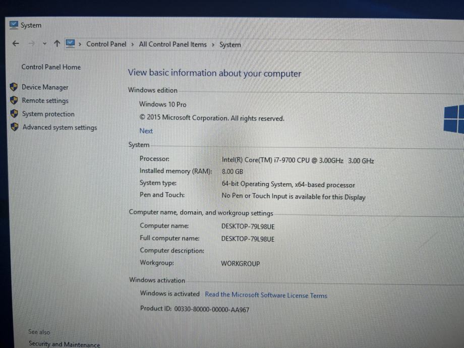 Procesor: i7-9700 3.00GHz 8 jezgri