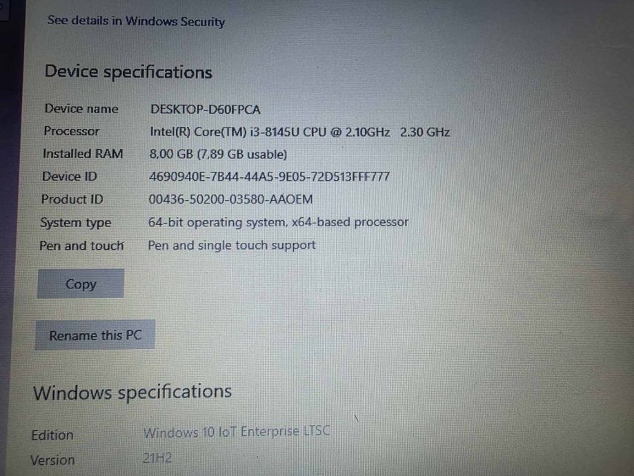 Windows 10 IoT Enterprise 2021 LTSC