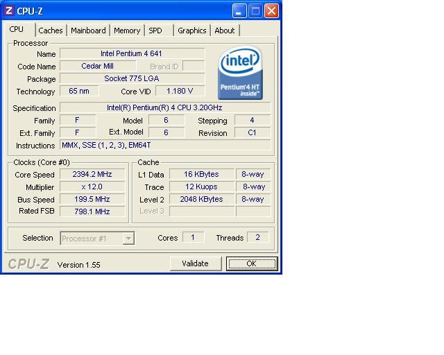 Intel® Pentium® 4 Processor 641 supporting HT Technology (2M Cache, 3.20 GHz, 800 MHz FSB) (http://ark.intel.com/Product.aspx?id=27481)