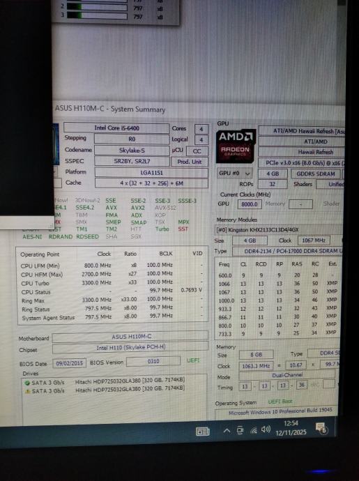 HDD: Hitachi 320GB, win10 pro(test edition)