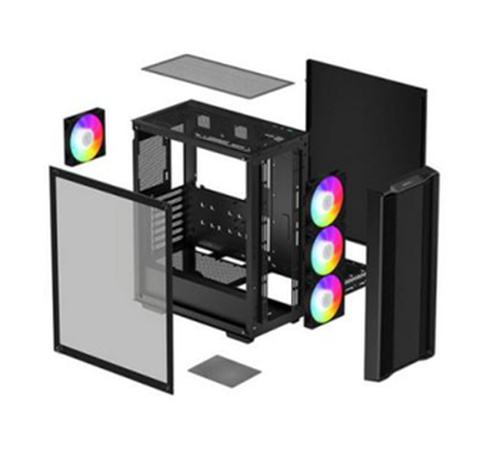 Kućište DEEPCOOL CC560 ARGB V2, tempered glass, 1x USB 3.0, 1x USB 2.0, 4x 12cm ARGB ventilator, bez napajanja, crno.