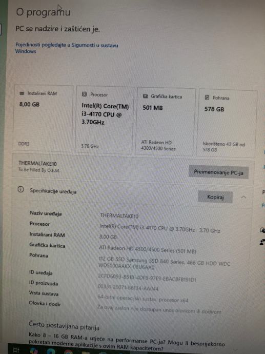 ThermalTake V6 računalo i3-4170, 8 GB RAM, 128 GB SSD