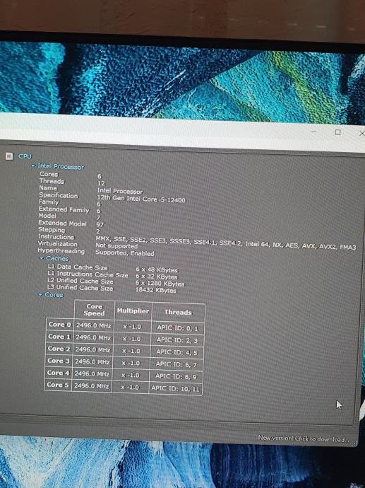 CPU-------------I5 12400 do 4,4 MHz ---6 fizičke i 12 logičkih jezgri