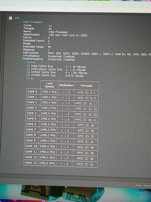 CPU-------------I5 13500 do 4,8 MHz ---14 fizičkih i 20 logičkih jezgri