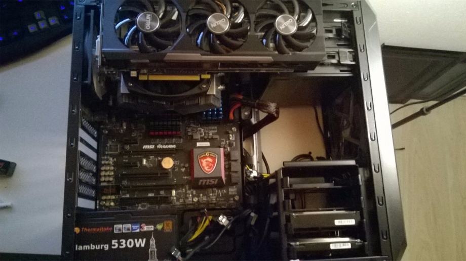 Napajanje: Thermaltake Hamburg 530W, 80+ bronze, aktiv PFC, 2x 8pin za grafiku, 120mm vent.