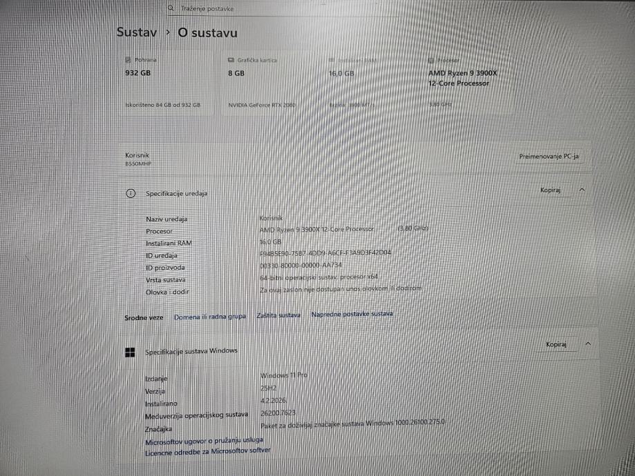 Na prodaju osobno računalo maženo i paženo cijelo vrijeme. Pokreće sve nove igrice bez problema sa procesorom sa 12 Jezgri i grafičkom karticom od 8GB. pogodno i za Video editing i slično. Nikada problema nisam imao s računalom, redovito je održavano i mijenjana termalna pasta. Gore su trenutno njnoviji Windows 11 Pro.