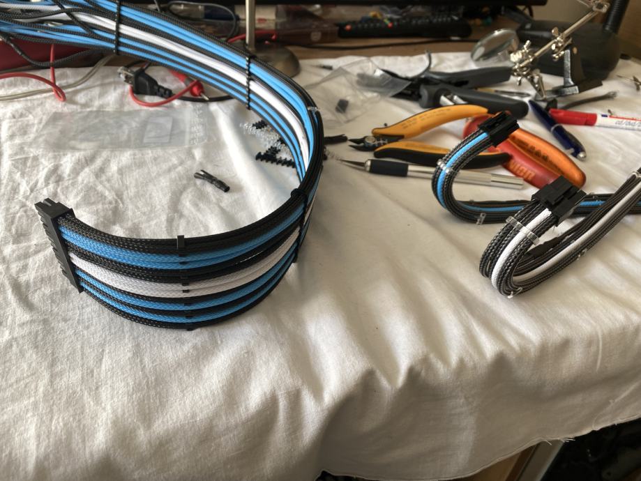 24-pinski i 8-pinski napajački kabeli su rađeni u CUSTOM izvedbi sa opremom MDPC-X (Germany) (žica je u oba slučaja AWG15 [1,5mm2])