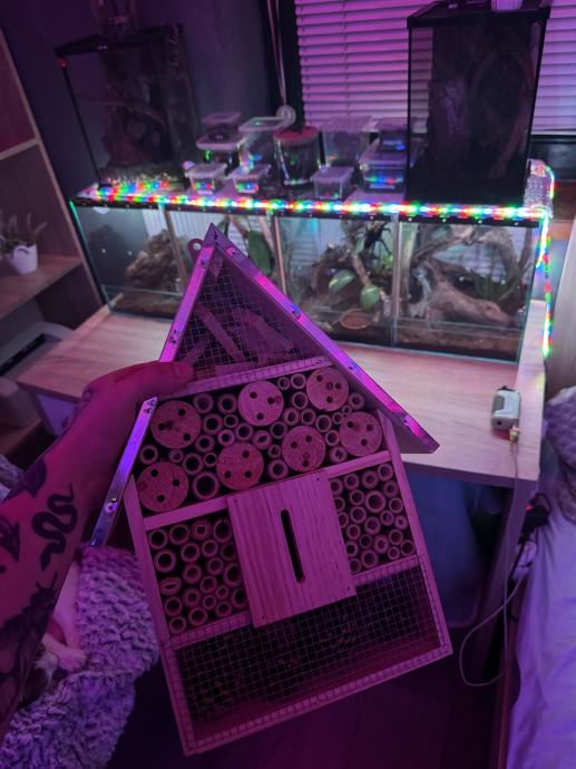 Prodajem hotel za kukce namijenjen solitarnim pčelama i drugim korisnim vrtnim kukcima. Idealan za vrt, voćnjak, dvorište ili balkon te pomaže oprašivanju biljaka i održavanju prirodne ravnoteže.