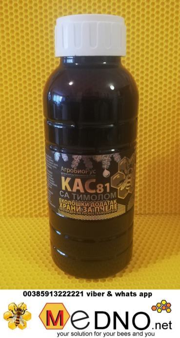 Ekološko sredstvo u borbi protiv noseme cerane ,noseme apis i varooze .Na bazi gorkog pelina i borovih pupoljaka za stimuliranje zaleganja matice u proljece i kasnu jesen kada se mjenjaju zimske pčele u proljetne te ljetne u zimske. KAS-81 se rastvara u toplom (cc 25°-35°S) šećernom sirupu, pripremljenom u odnosu 1 : 1, računajući 5-10 ml na 1 l šećernog sirupa ili 1 kg pogače. Ukoliko se preparat koristi u preventivne svrhe preporučuje se doza od 8 ml na 1 l sirupa (1:1) ili 1 kg pogače. Ukoliko se koriti kao dodatok hrani i primenjuje se kada su već uočeni znaci oboljenja ili za jače zajednice preporučuje se doziranje u odnosu 10 ml na 1 l sirupa (1:1) ili 1 kg pogače. Pripremljena hrana se raspoređuje u gornje hranilice unutar košnica u odnosu 300-350 ml sirupa ili 0.5-1 kg pogače za pčelinju zajednicu prosječne snage. Hranjenje sirupom se vrši 3-4 puta sa pauzom od 5 – 7 dana. Efikasan metod u borbi protiv krpelja (Varooze) i truleži legla, prskanje satonoša koncentrovanim (nerazblaženim) rastvorom „KAS 81“ i to 10 ml za pčelinje društvo koje zauzima 10-12 okvira. Preporučuje se primjena 3-4 puta u razmaku od 4-5 dana. Preporučuje se da se sa upotrebom preparata prestane 15 dana prije početka sakupljanja meda. Dozvoljeno je stvaranje taloga. Promućkati prije upotrebe. Nije ljek. Čuvati na suhom mjestu zaštičenom od svjetlosti na temperature od 0° do 25°S.