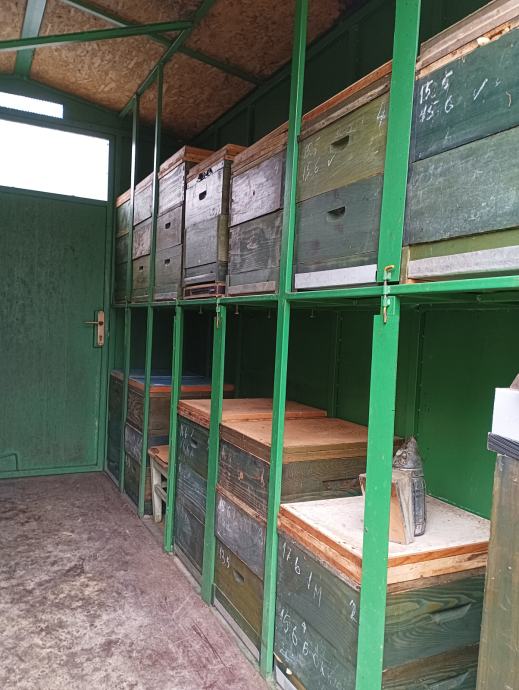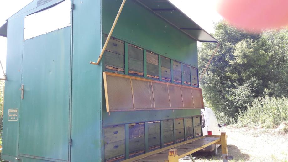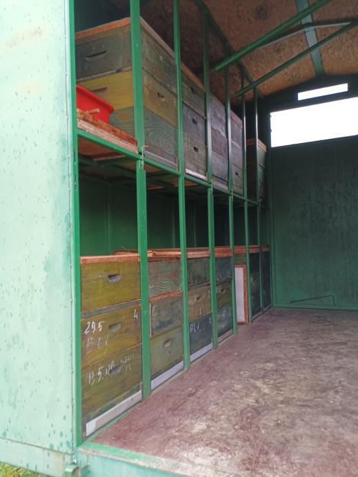 .Prodajem kontejner za pčele s pčelama a može i same pčele. Mjesto za 28 zajednica na po pet nastavaka Farrar dimenzija. Trenutno ima 26 zajednica na dva i tri nastavka, Uz njih dajem još nastavaka do 4 po svakoj zajednici. Košnice opremljene antivaroznim podnicama. matičnim rešetkama i bježalicama
