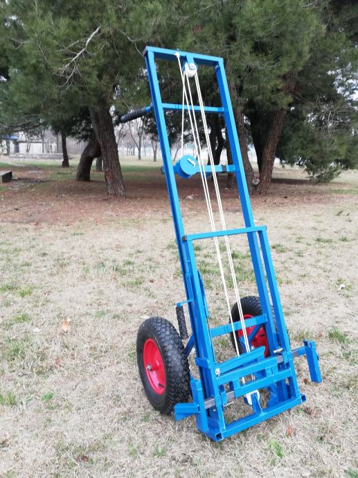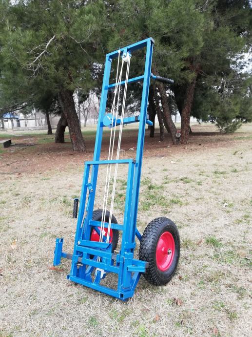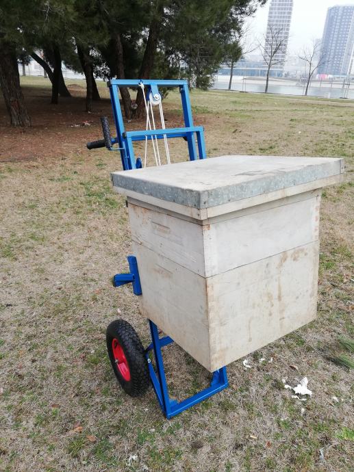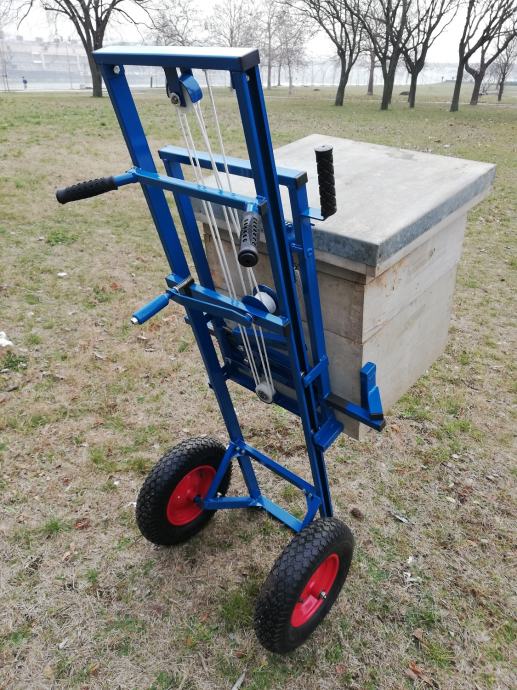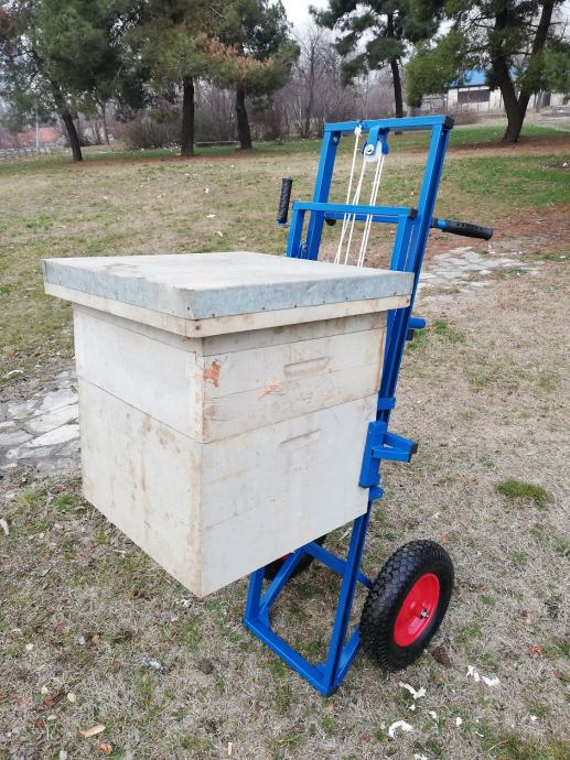 Pcelarska dizalica koristi se za podizanje, prenosenje i rad na kosnicama. Kosnice zahvata bocnim stegama ili horizontalnim viljuskama. Maksimalna sirina zahvatanja bocnih stega je 60 cm, a minimalna 36 cm. Podize terete do max. 100 kg. Za podizanje tereta potrebna je sila cetiri puta manja od tezine. Kosnice podize na visinu od 120 cm dno kosnice. Tockovi se mogu postaviti jedan do drugog i rasireno sa strane.