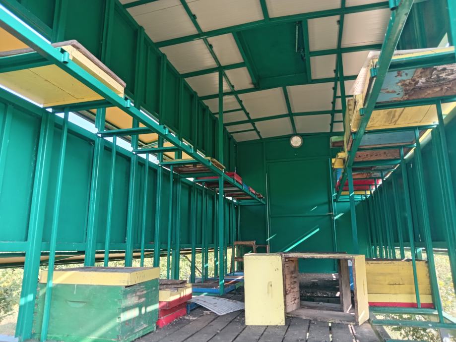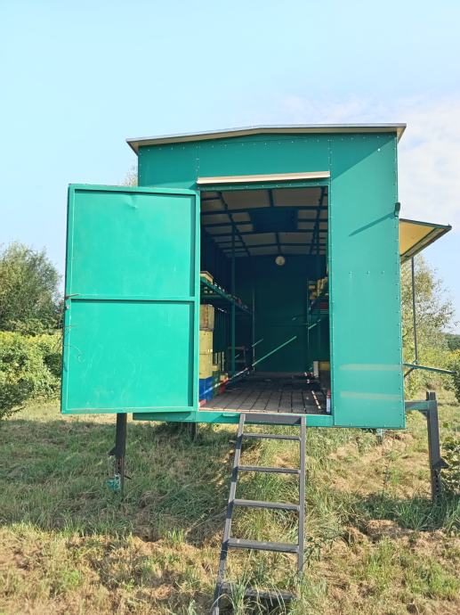 Prodajem malo korišten pčelarski kontejner za 48 standardnih LR košnica. U postolja stanu košnice sa 4 LR nastavka. Postolja za košnice su izrađena od omega profila, a prostor između svake košnice je 5 cm, što znači da postoji dovoljan razmak između za lakše rukovanje i izvlačenje. Košnice se učvršćuju također omega profilima koji se postavljaju vertikalno. Širina kontejnera je 235 cm, a dužina 570 cm.