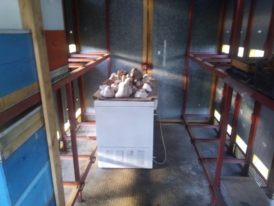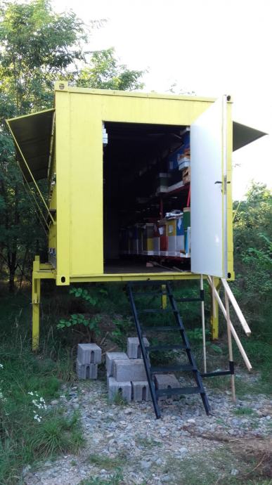 Napravljen od brodskog kontejnera standardnih dim.2,4x 6m. Sadrži 48 mjesta za standardnu LR košnicu na tri nastavka u oba reda te 4 mjesta za 6-okv.nukleus.