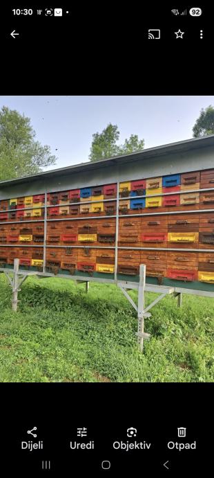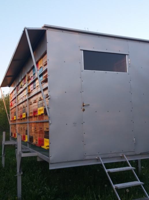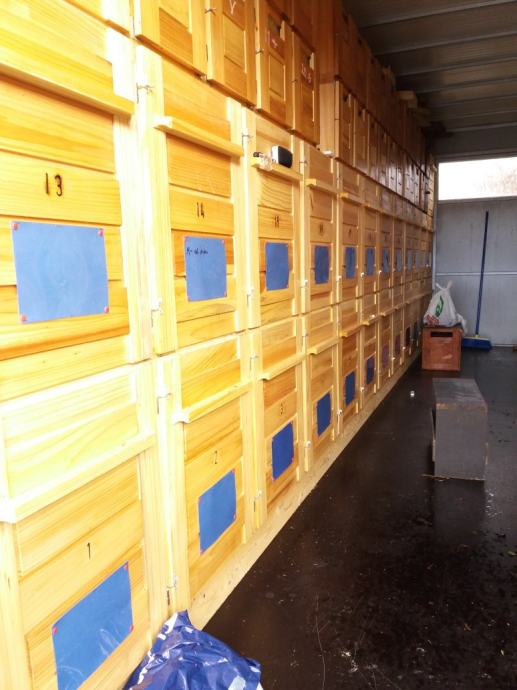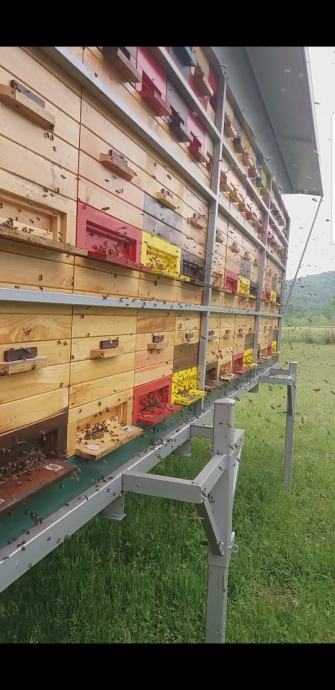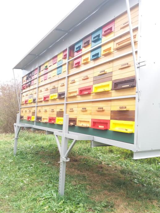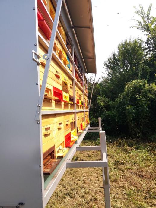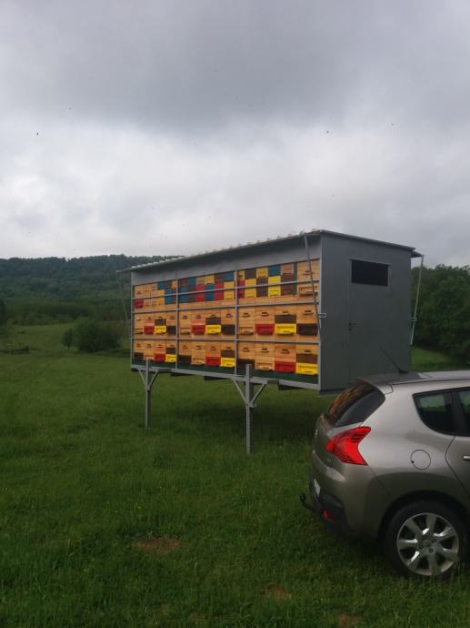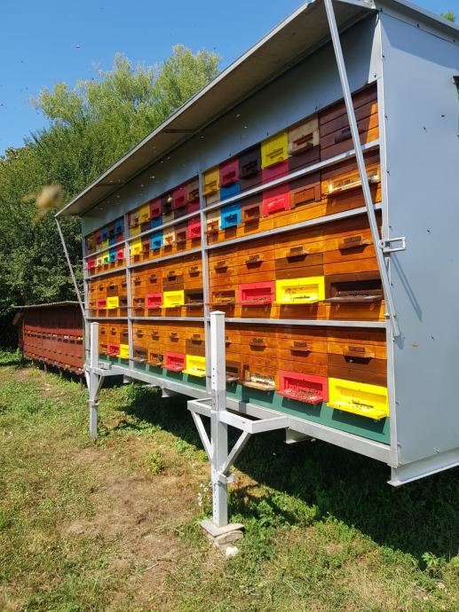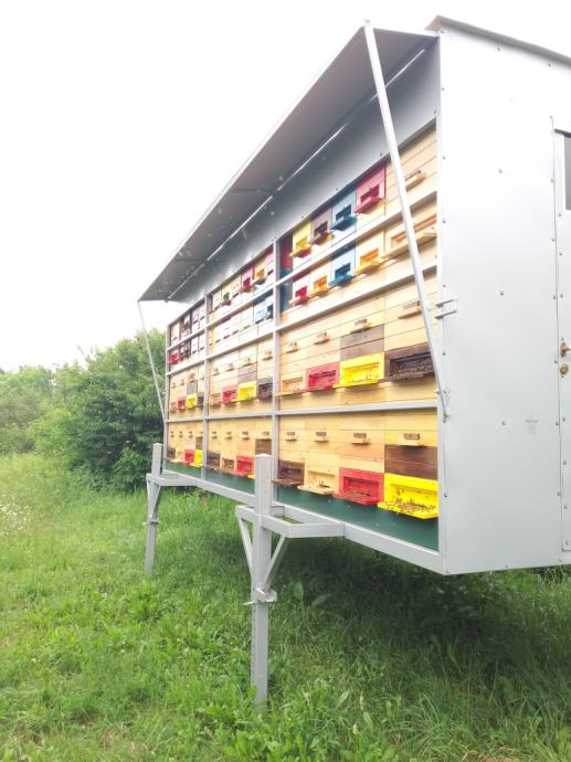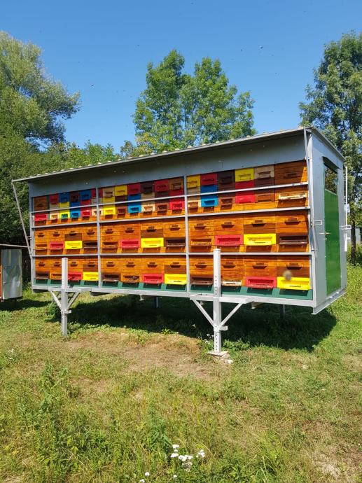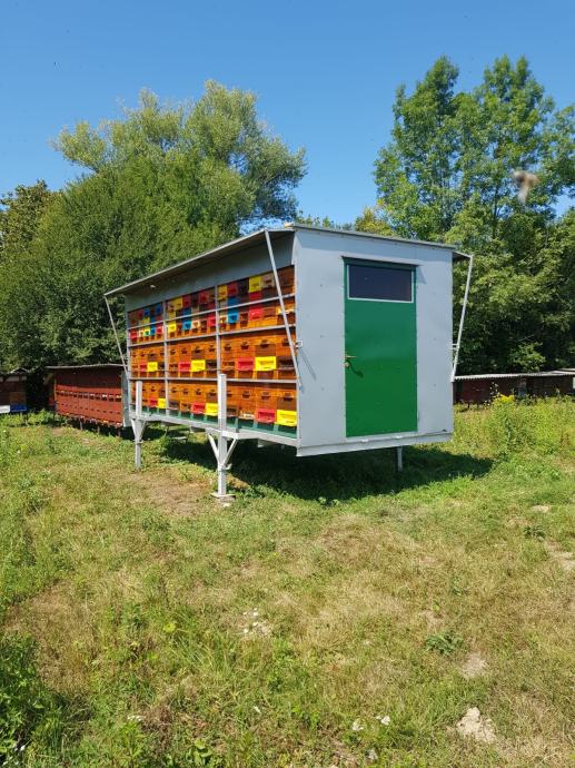 Kontejner kapaciteta 72 AŽ dvanaest okvirne AŽ košnice. Trenutno smjestene 52 AŽ kosnice (izrada Kenđel S., Petrinja). Kosnice napunjene pčelom. Krov sendvic panel. U kontejner stane jos 20 AŽ kosnica, trenutno su smjesteni sedamokvirni nukleusi 64 komada, također napunjeni pčelom koji su takodjer na prodaju. Košnice i nukleusi noviji. Prodaja isključivo u kompletu. Cijena dogovor.