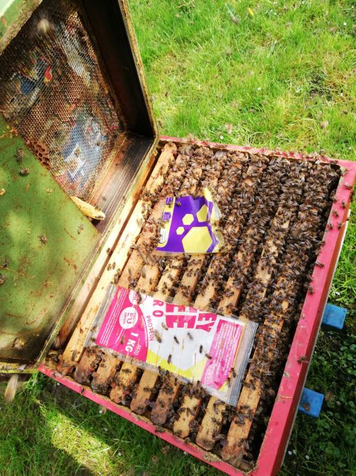A sa košnicom 7 godina starom antivarozna podnica, dva nastavka matična, hranilica i poklopac 1550kn 210e