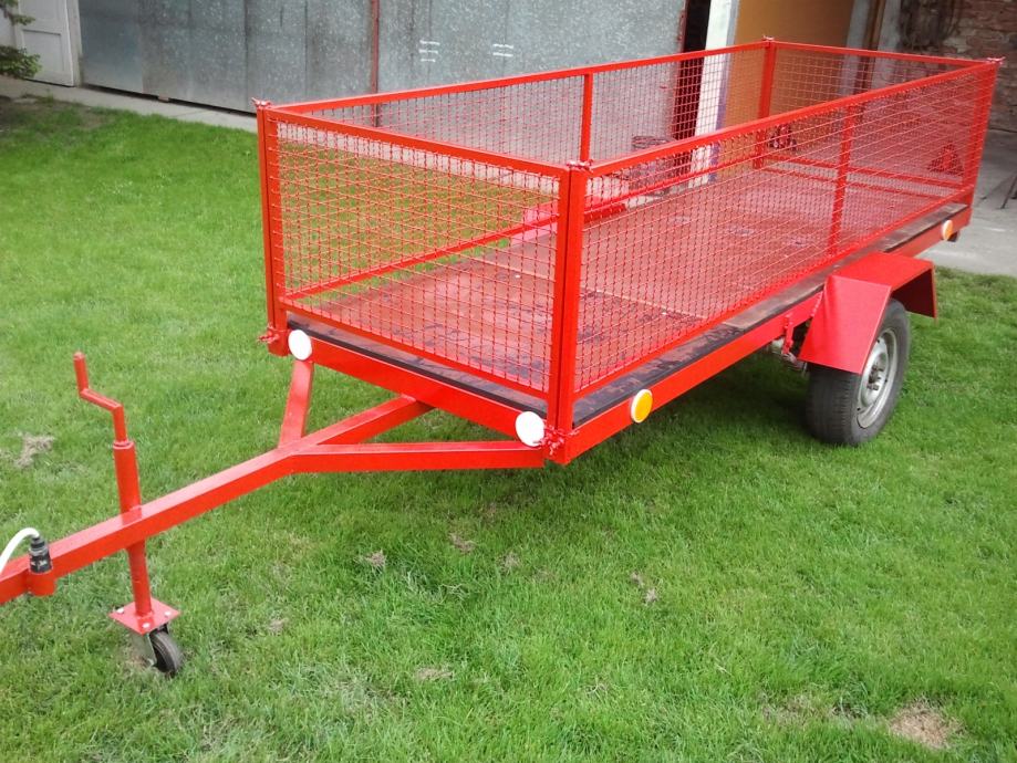 dužina prikolice je 3m, širina 1m, ima montažne stranice visine 60cm za uobičajno korištenje, jer tako velika prikolica dobro dođe u pčelarstvu za prijevoz. ja sam vozio 1,5 tona s njom bez ikakvih problema.