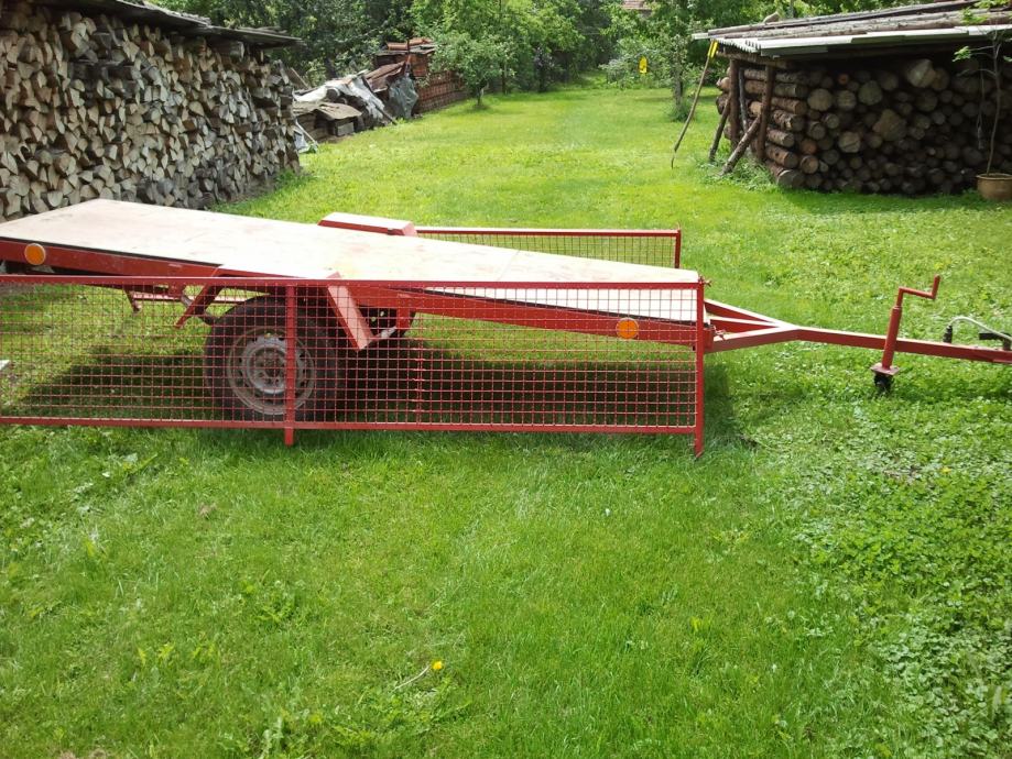 u kompletu se prodaje i auto prikolica za prijevoz platformi, registrirana, ojaćana, ima teretne gume 14cola, svaka nosivosti 800kg, ima rezervni kotač.