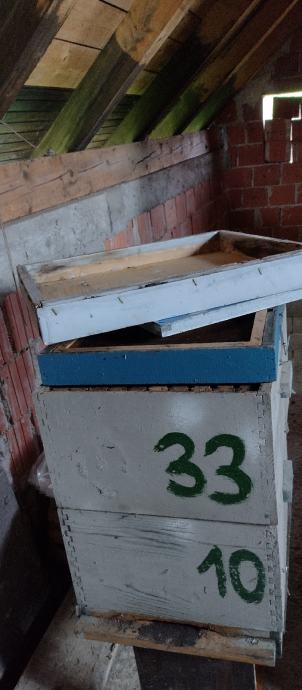Košnica Lr. krov poklopna daska hranilica dva nastavka 20 okvira av.podnica rabljeno.Sve zajedno 5 kompleta pojedinačno 35.eur.1 košnica.