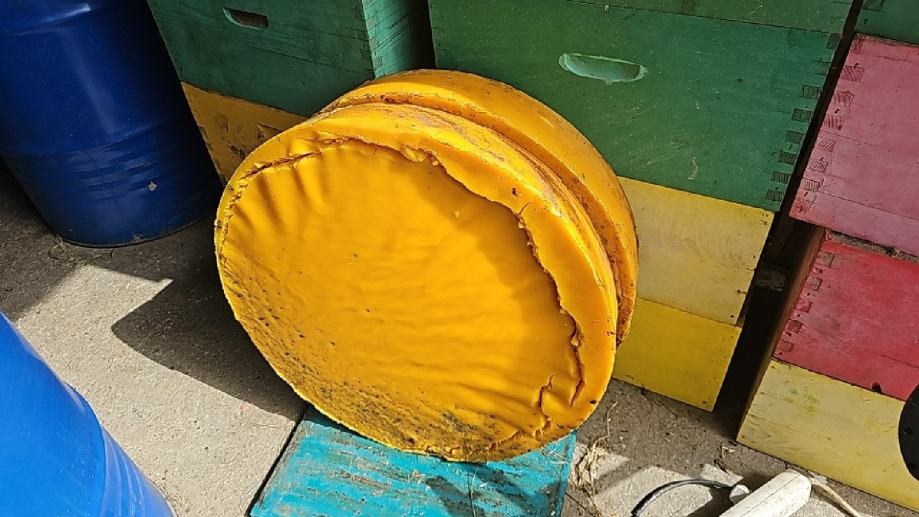 Prodajem pčelinji vosak dobiven pretapanjem poklopčica od poslje vrcanja po cijeni od 12 € za kg