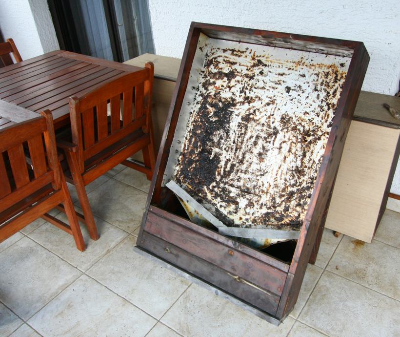 Prodajem solarni-sunčani topionik voska. Moja domaća izrada. Dosta je velik, može primiti 4 okvira, ili ako idu okviri jedan na drugi onda i više. Ima i stakleni poklopac od prozora s izo-staklom. Prozor je malo raskliman. Stranice su od punog drveta. Lim je aluminijski, a ono crno na limu je od topljenja voska, ostaci propolisa i sl. Uz malu doradu može biti jako dobar. Meni ga se ne da dorađivati, jer zbog bolesti sam morao prodati pčele. 300 kuna