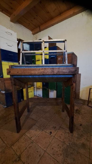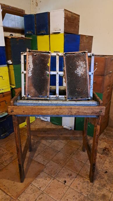 Prodajem električnu automatsku kasetnu vrcaljku Logar za 6 okvira. Cijena 1300,00 €. Također rodajem stol za otklapanje okvira, ručno rađen. Cijena 100,00 €.