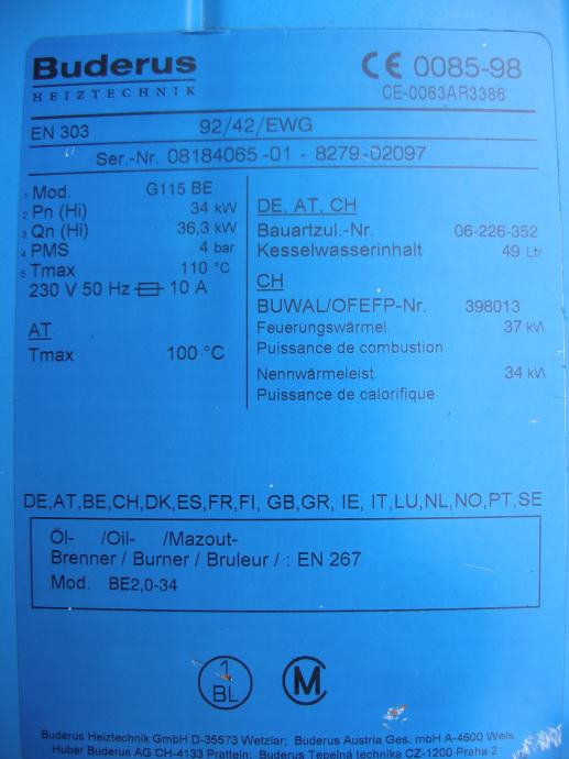 Prodajem Buderus G115 U kotao za centralno grijanje, lijevano željezni (dugi vijek trajanja), sa spojnom garniturom, 34 kW.