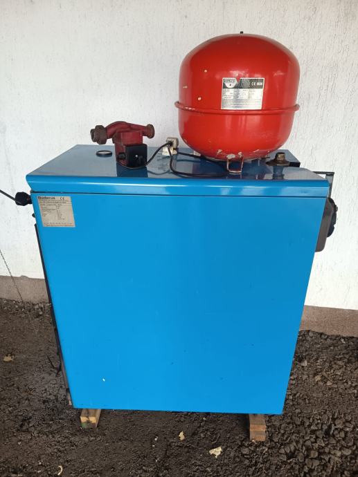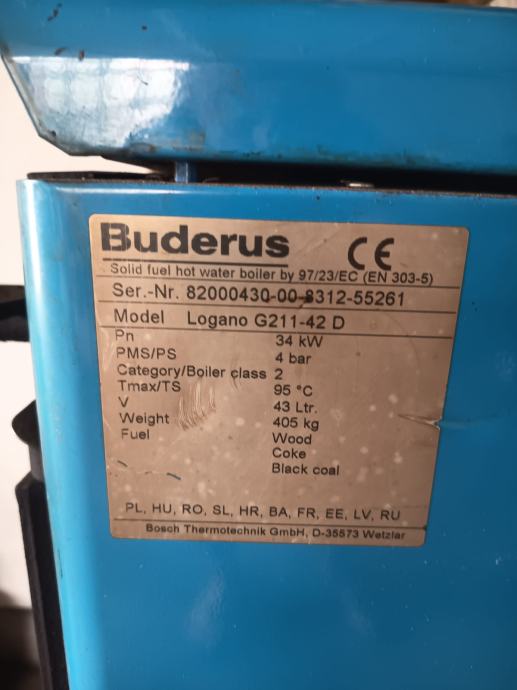 Buderus, peć za centralno na drva, gusana, 34kw, uz peć ide pumpa, ekspanziona posuda sa sig. ventilom i priključak na dimnjak sa slike.Potrbno je doći sa ljudima zbog utovara.Cijena 659€. Tel. 098 95 81 893.Okolica Karlovca.
