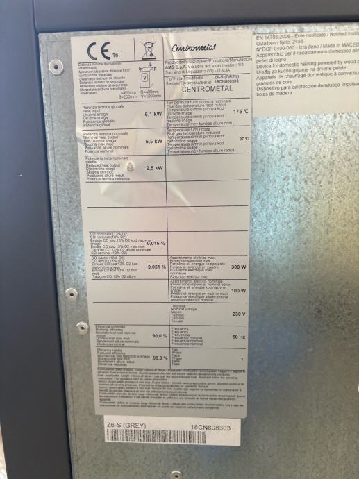 Prodajem rabljenu peć na pelete Centrometal CentroPelet Z6-S u sivoj boji. Radi se o kompaktnoj peći namijenjenoj grijanju prostora, s energetskom oznakom A+ i snagom od 5,5 kW.