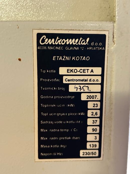 Prodajem kotao Centrometal ECO CET 23 kW, u super stanju, potpuno ispravan i uredno održavan.