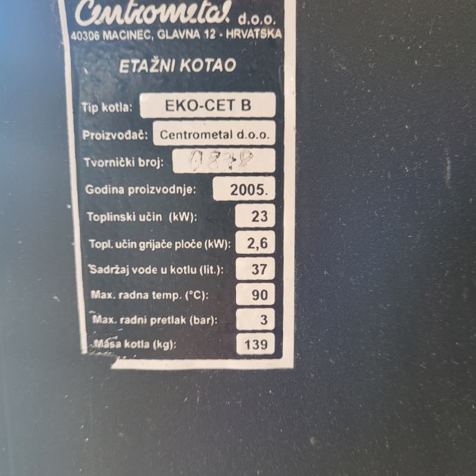 Peć za centralno etažno grijanje na kruta goriva Centrometal EKO-CET B 23 kW , lijevi dimnjak.