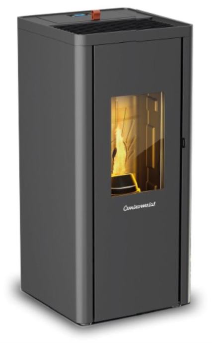 -Sobna peć na pelete za toplozračno grijanje upuhivanjem toplog zraka u prostor.