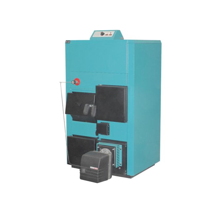 Čelični toplovodni kotlovi CentroPlus i CentroPlus-B nazivnog toplinskog učina 25, 35 i 49 kW imaju dva odvojena ložišta u zajedničkoj kotlovskoj vodi. Lijevo ložište koristi se za loženje krutim ili tekućim gorivom, a desno za loženje peletima ili tekućim gorivom. Mogućnost kombinacije loženja krutim gorivom i automatskog uključivanja uljnog ili pelet plamenika u trenutku kada kruto gorivo ne zadovoljava potrebu za toplinom, čini ovaj kotao posebno interesantnim Toplinski učin: 35kW Masa kotla: 522 kg Dubina/širina kotla: 1065/1015 mm Visina kotla: 1260 mm Razred en. učink.: A