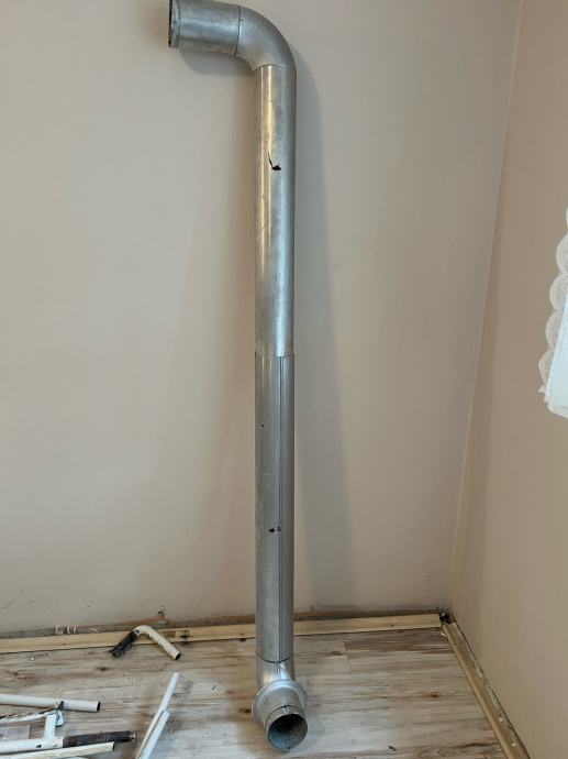 Aluminijska cijev za dimnjak od plinskog bojlera. Promjer 110mm, visina 180cm, dva koljena